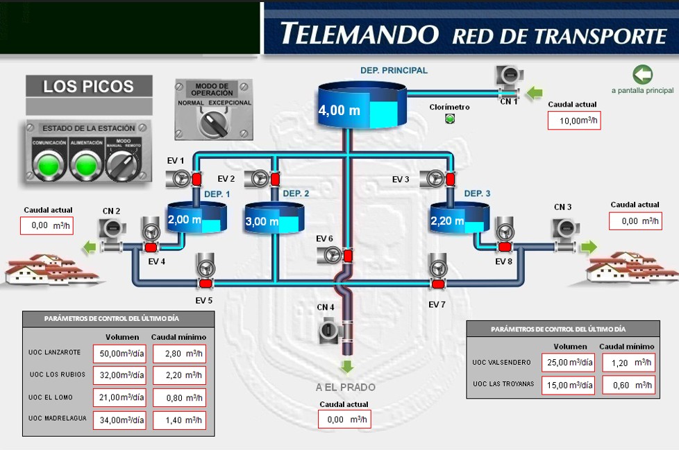- Gestionar de forma precisa los parámetros de control, estableciendo volúmenes de suministro y caudales mínimos para cada zona, como las UOC de Lanzarote, Los Rubios, Valsendero o Las Troyanas.
